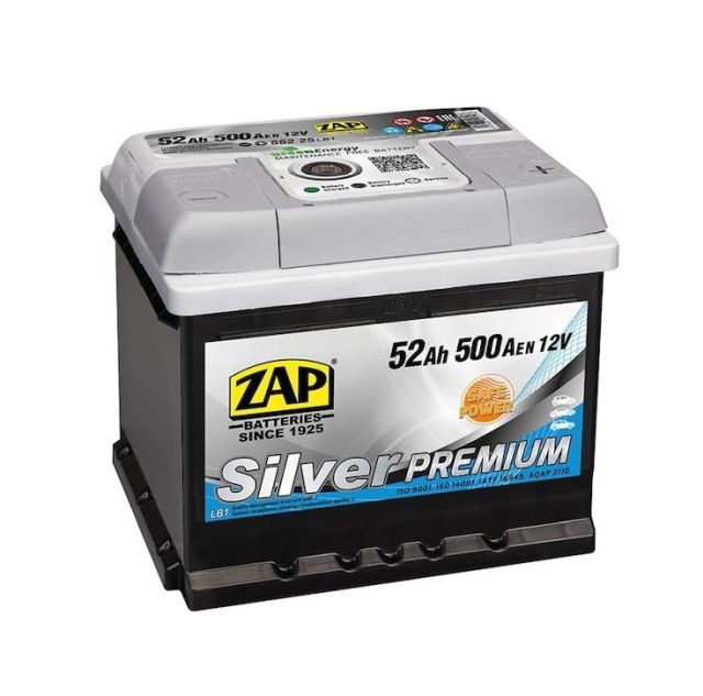 12V, 52Ah, 500A, 206x175x175, ZAP Silver Premium
