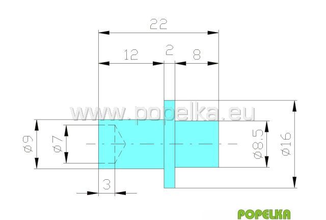 | K/K/0 | zakončení má ve šroubení kužel uprostřed a na jednom kraji, na druhém kraji má rovné čelo, zpravidla u šroubení | ||||||