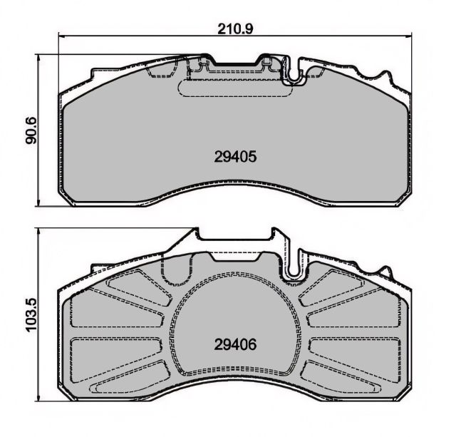 | L(2) | vzdálenost mezi osou středového čepu a osou vaku pérování (v případě tvaru XXX/XXX, první číslo platí pro vak BPW30 a druhé pro vak BPW36) | ||||||