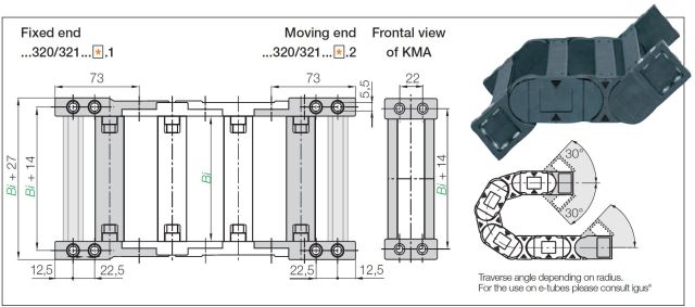 Igus, 173×54/150×32, Bi150, KMA, Série E4.32, černý, plast