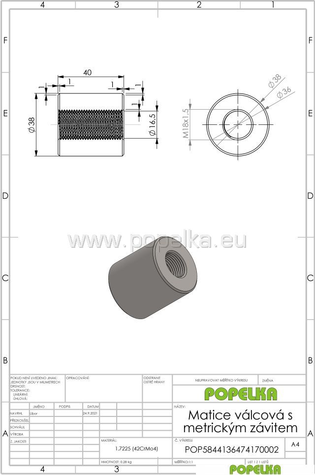 Matice válcová s metrickým závitem
