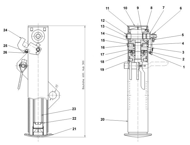 Nohy odstavné – Hřídel hnací s drážkováním