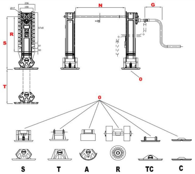 | K/0/K/0 | zakončení má ve šroubení kužel na dvou koncích naproti sebe, na dalších dvou naproti sebe má rovné čelo, zpravidla u šroubení | ||||||