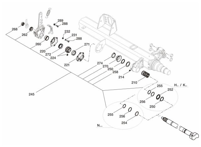 | L(4) | vzdálenost mezi osou středového čepu a osou 2. díry pro uchycení vaku pérování | ||||||