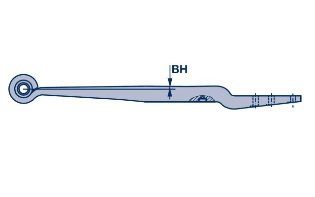 | BH | výška prohnutí pera, od osy čepu uložení pera/horního listu ku kluzáku po spodní část pera v místě středového čepu | ||||||