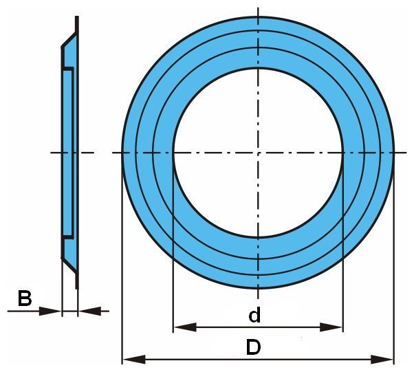 | d | průměr vnitřní, někdy může být použitý i nejmenší vnější (další míry oddělené lomítkem jsou průměry měřitelné od tohoto průměru větší), (další míry oddělené písmenem „x“ jsou délky) [mm] | ||||||