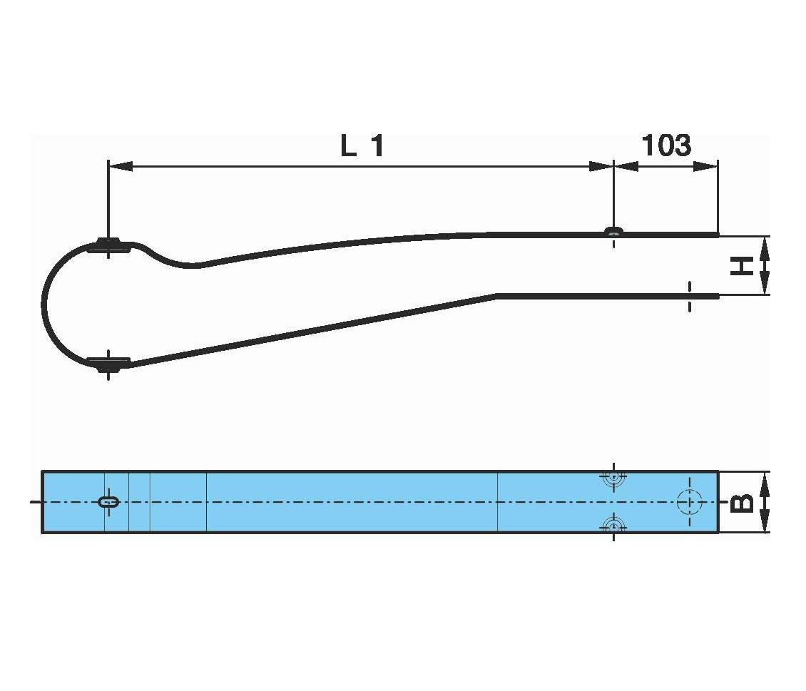 | BH | výška prohnutí pera, od osy čepu uložení pera/horního listu ku kluzáku po spodní část pera v místě středového čepu | ||||||