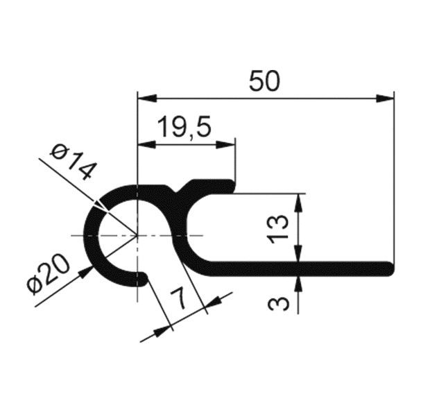 Profil napínání plachty boční s hákem