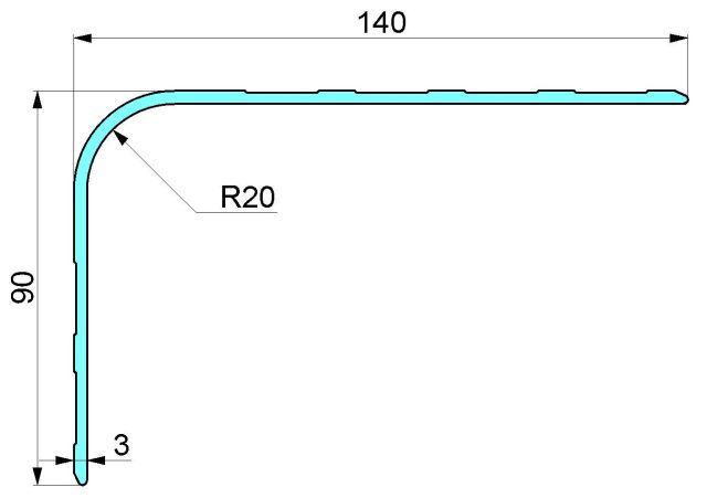 140x90x3,0, R20, AL, profilovaný, RAL 9010