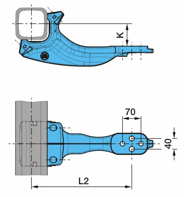| L(2) | vzdálenost mezi osou středového čepu a osou vaku pérování (v případě tvaru XXX/XXX, první číslo platí pro vak BPW30 a druhé pro vak BPW36) | ||||||