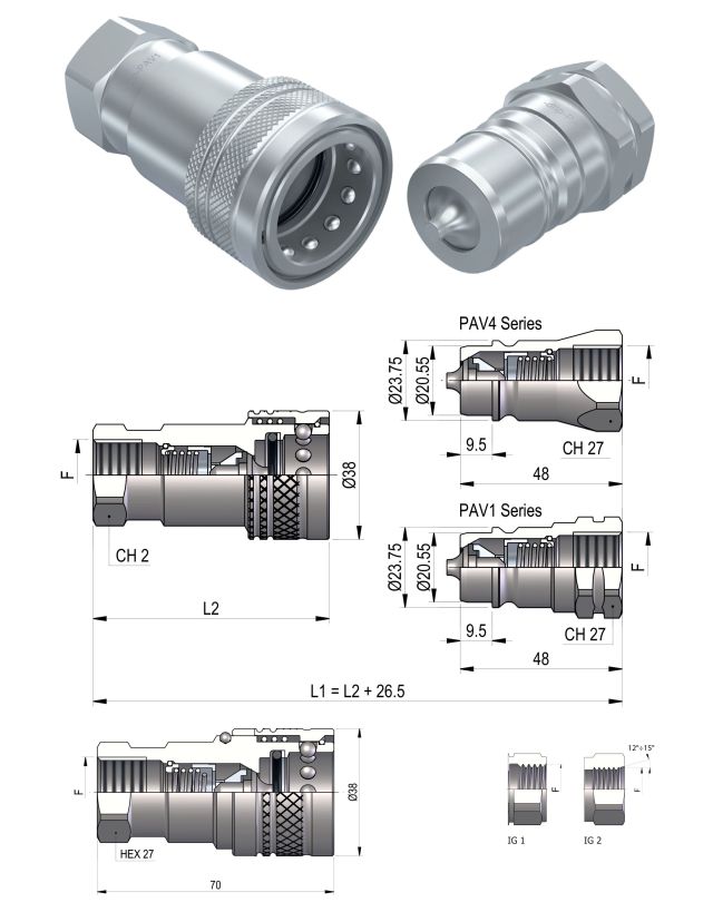 Dn13, ISO12,5, BG3, 1/2″, D20,55/23,75, M