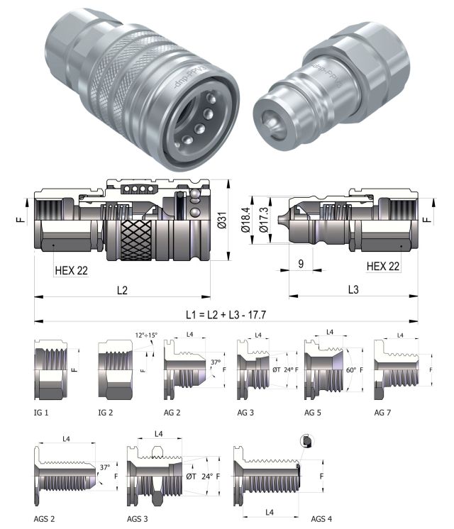 Dn10, ISO10, BG2, 3/8″, D17,3/18,4, M