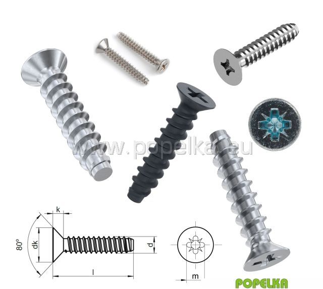 Šroub do plechu se zápustnou hlavou, drážkou Pozidrive a tupou špičkou