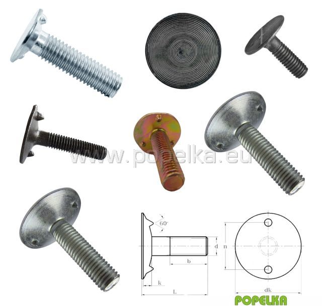 Šroub se zápustnou hlavou korečkový s maticí a podložkou