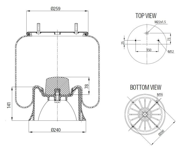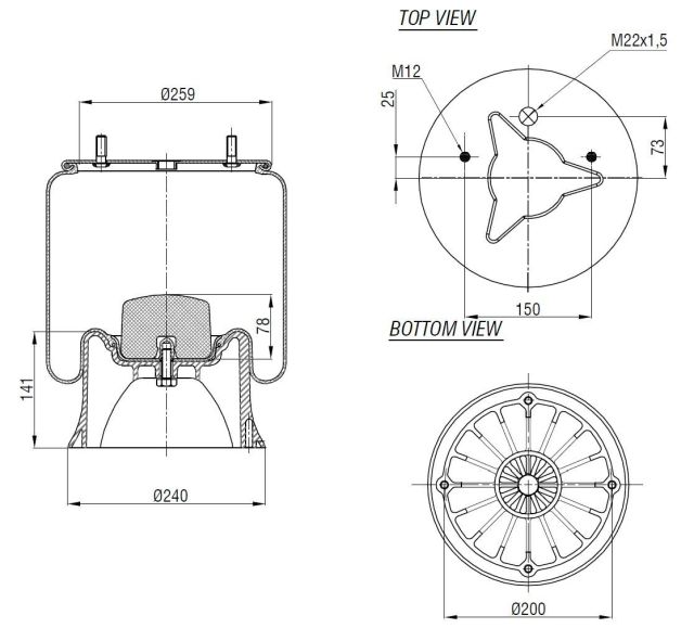 | L(2) | vzdálenost mezi osou středového čepu a osou vaku pérování (v případě tvaru XXX/XXX, první číslo platí pro vak BPW30 a druhé pro vak BPW36) | ||||||