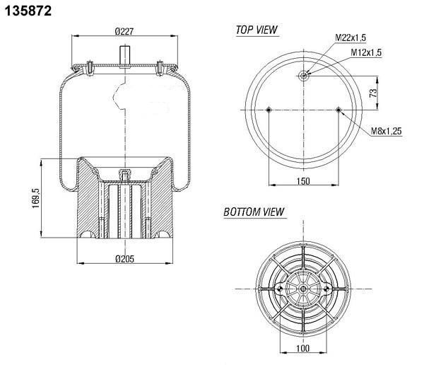 Schmitz, D227, R73/150, 2xM12, zvon R100, NoName