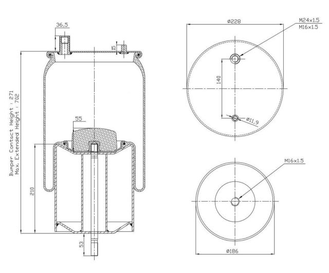 | L(2) | vzdálenost mezi osou středového čepu a osou vaku pérování (v případě tvaru XXX/XXX, první číslo platí pro vak BPW30 a druhé pro vak BPW36) | ||||||