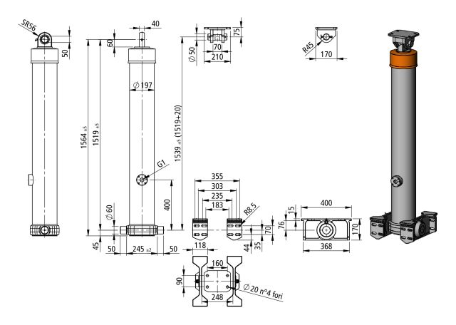 | L(4) | vzdálenost mezi osou středového čepu a osou 2. díry pro uchycení vaku pérování | ||||||