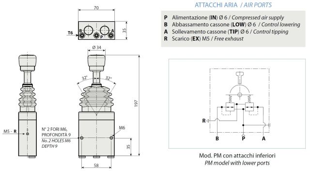 Ventil ovládání pneumatický; Ventil 4/3 s pákou do kabiny