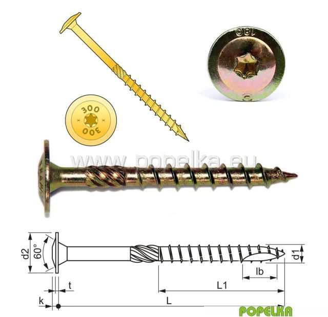 Vrut do dřeva konstrukční s talířovou hlavou, vnitřní drážk. TORX, řeznou špičkou a frézou