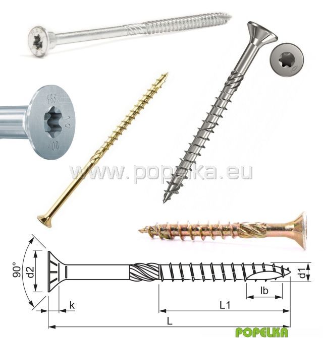 Vrut do dřeva konstrukční s zápustnou hlavou, vnitřní drážk. TORX, řeznou špičkou a frézou