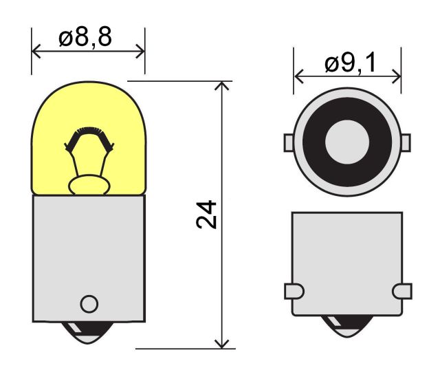 12V/T(H) 2W, BA9s, D 8,8×24, NoName